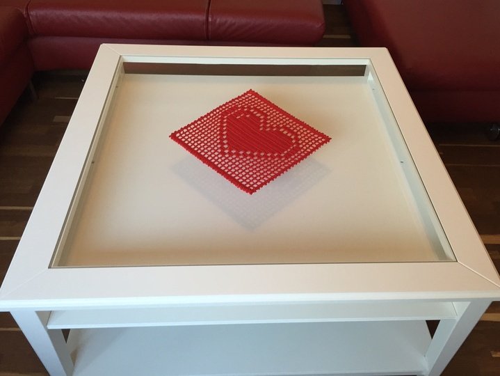 Das Deckchen hat, wenn es mit Catania-Baumwollgarn (oder einem anderen BW-Garn mit gleicher LL) und einer 2,5er Häkelnadel gearbeitet wird, etwa 29 x 29 cm, hat also die ideale Größe z.B. für den Couchtisch oder als Unterdeckchen unter einer Blumenvase auf dem Esstisch.