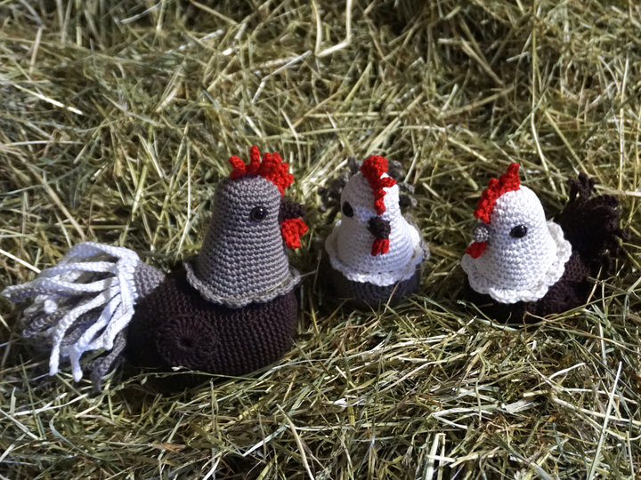 Mit diesen realitätsnahen Hühnern wirst du viel Freude haben. Sie sind sympatisch, pflegeleicht, machen keinen Lärm und Dreck und brauchen auch nicht jeden Tag ihr Futter. Sie sind schnell gehäkelt, auch aus deinen Wollresten. Ihr einziger Nachteil: Sie legen keine Eier.