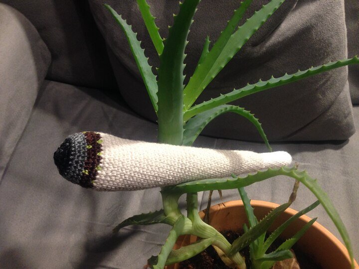 Es handelt sich hierbei um eine Häkelanleitung für einen Joint der bei vogegebener Nadelstärke ca. 21 cm groß wird. Ihr solltet feste Maschen häkeln können, sowie Maschen abnehmen und zunehmen können. Wenn Ihr noch Anfänger seit oder weitere Fragen habt, könnt Ihr mir gerne eine E-Mail schicken.