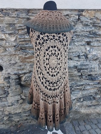 Die Kreisweste wird von innen nach aussen in Runden gehäkelt. Sie kann jeder Grösse leicht angepasst werden und auch ohne Probleme erweitert werden.