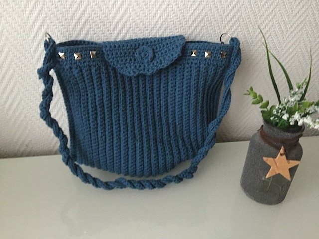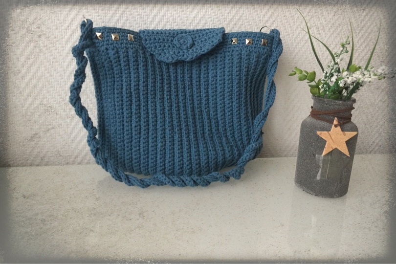 Hier habe ich für Euch eine wunderschöne, schnell gehäkelte Tasche. Diese wird fast in einem Stück gehäkelt