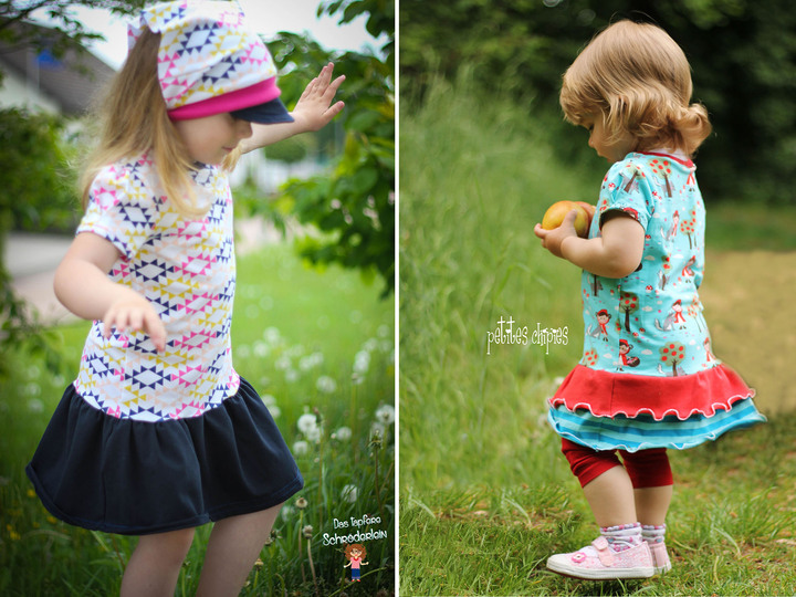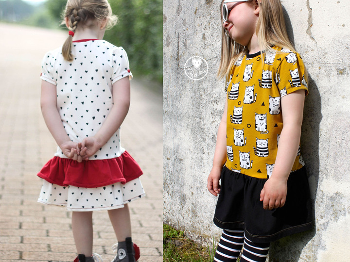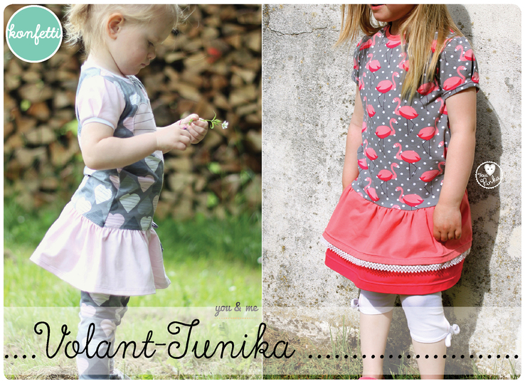 Die süße Tunika kann in 3 Varianten genäht werden: Mit kurzem Volant ist sie perfekt zur Leggings, mit langen oder doppeltem Volant auch prima als sommerliches Kleid!