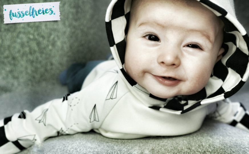 Nähanleitung und Schnitt für einen Babykapuzenpullover in den Größen 56-98