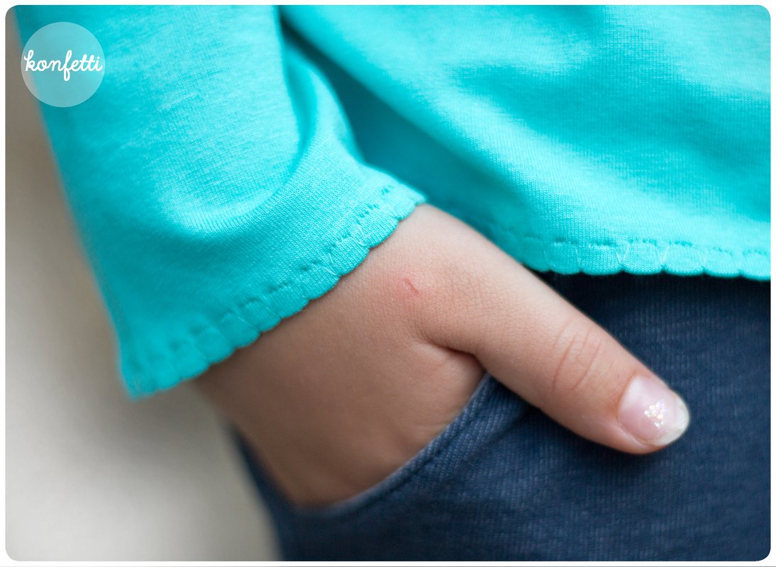 Das Girly-Shirt ist ein wahrer Mädchentraum, mit der süßen Raffung im Brustbereich verzaubert dieser Schnitt jedes kleine Mädchen. Für die extra Portion Romantik sorgt der zuckersüße Muschelsaum, welcher im ebook ausführlich erklärt wird.
