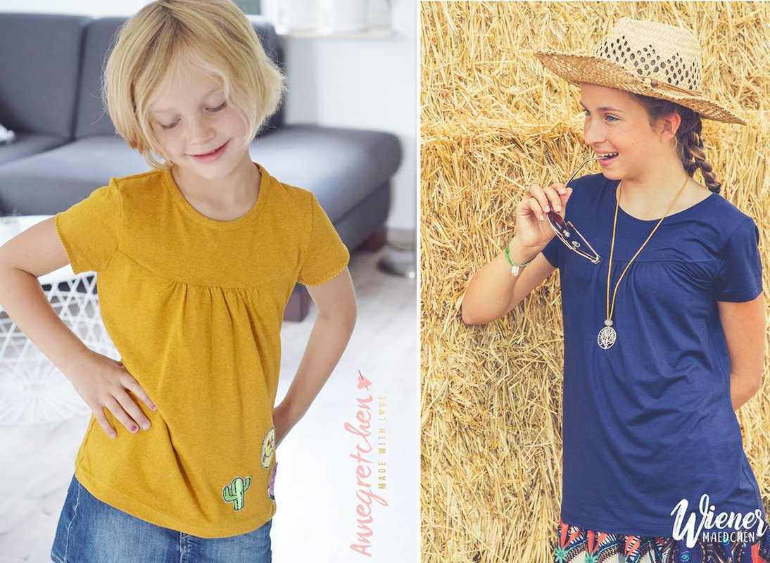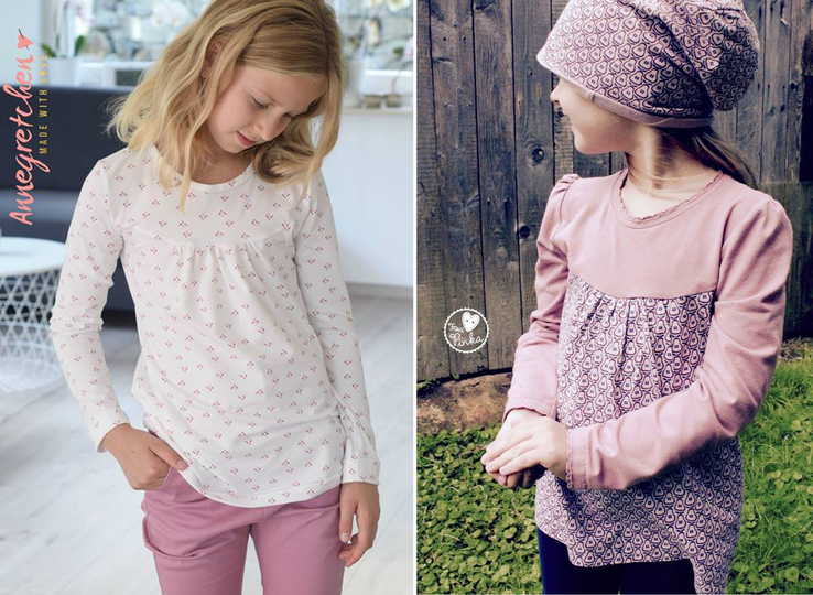 Nähanleitung und Schnitt für ein Mädchenshirt mit langen und kurzen Ärmeln in den Größen 86-164