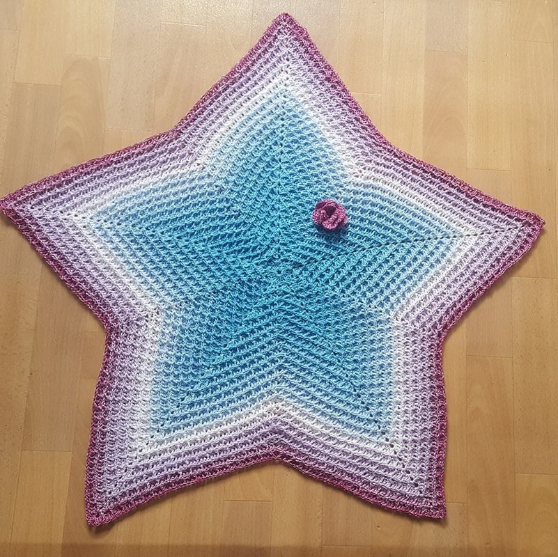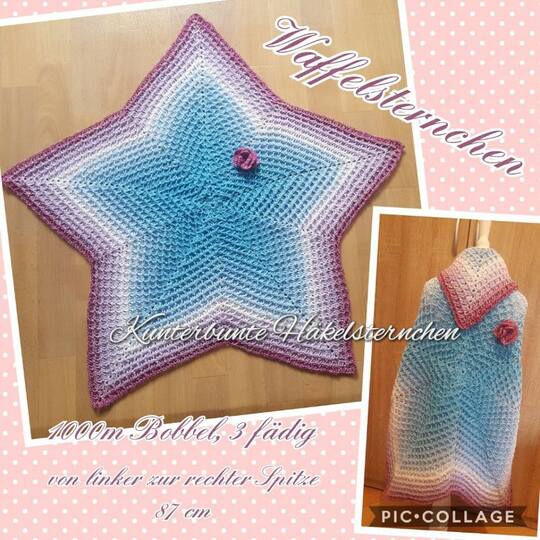 Es handelt sich um eine Sternchendecke mit dem Waffelmuster von Kunterbunte Häkelsternchen.