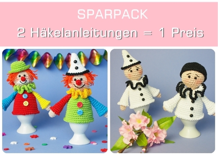 In diesem Sparpack sind die kompletten Häkelanleitungen für die Clowns (16 Seiten) und die Pierrots (14 Seiten) enthalten. Die Anleitungen haben eine Schritt-für-Schritt-Beschreibung und viele Bilder! Sie sind auch für Anfänger geeignet.