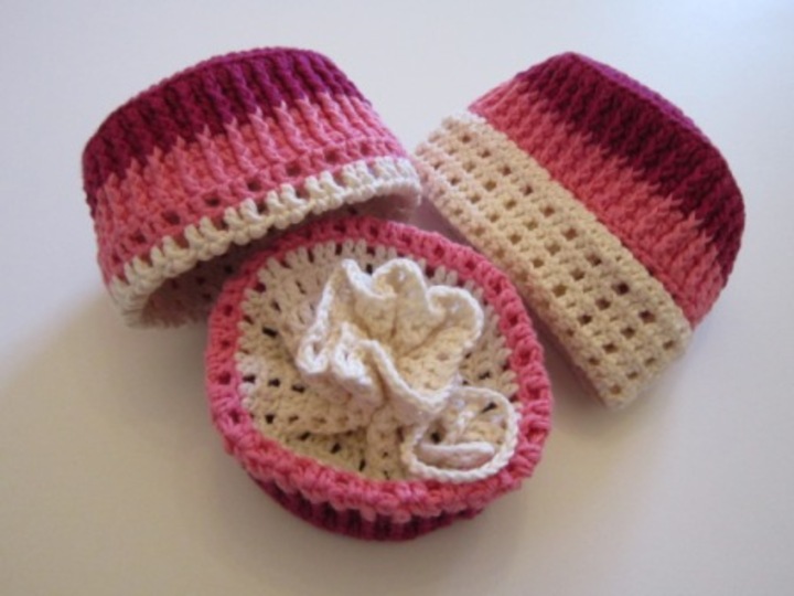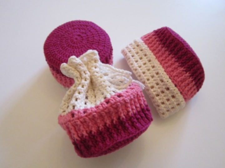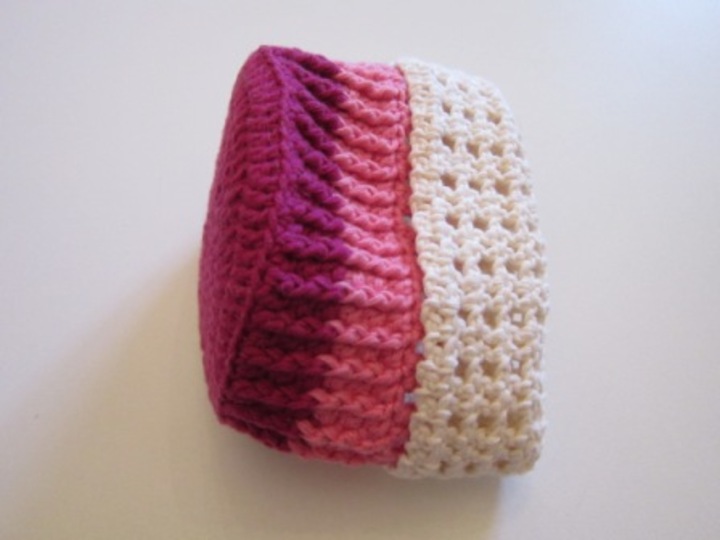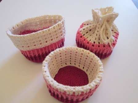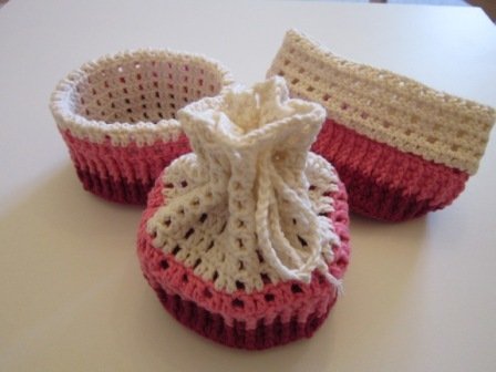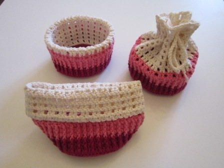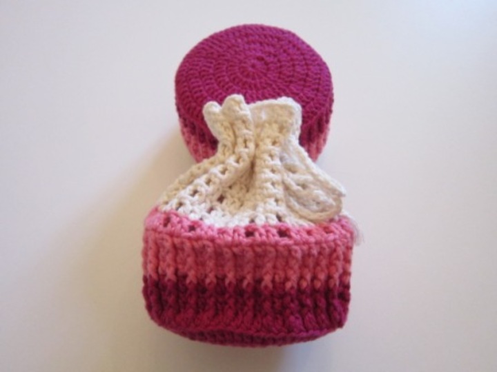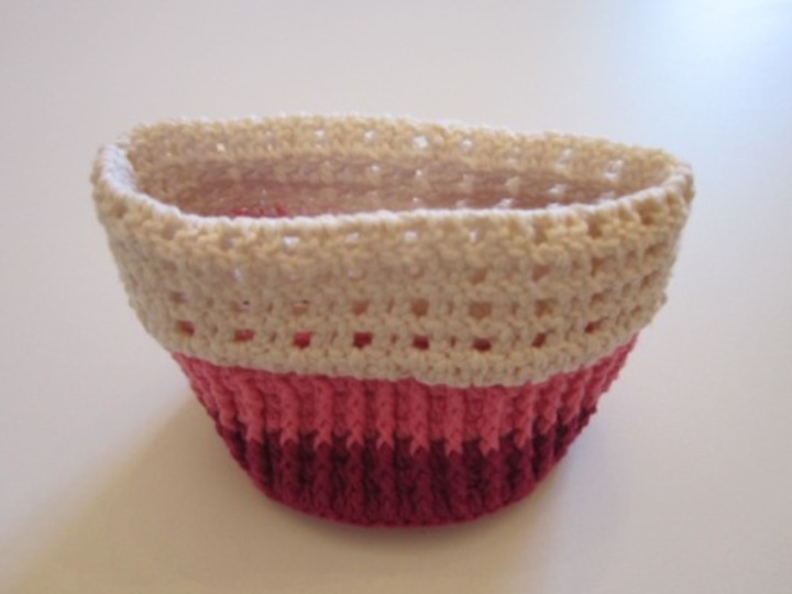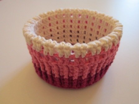 Verwendet habe ich ein Baumwollgarn LL 160m/50g und eine Häkelnadel 2,5. Die Gesamthöhe beträgt ca. 11 cm und der Durchmesser 9-10 cm.