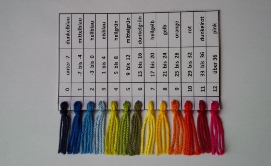 Außerdem eine Tabelle zum Eintragen der Temperaturen und daneben ein Feld für die jeweilige Farbnummer.
