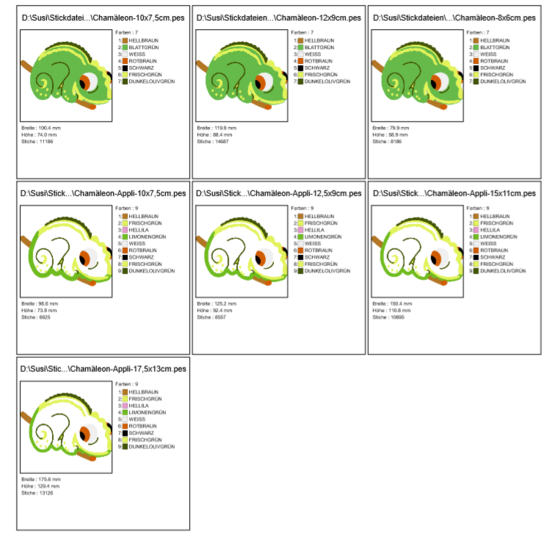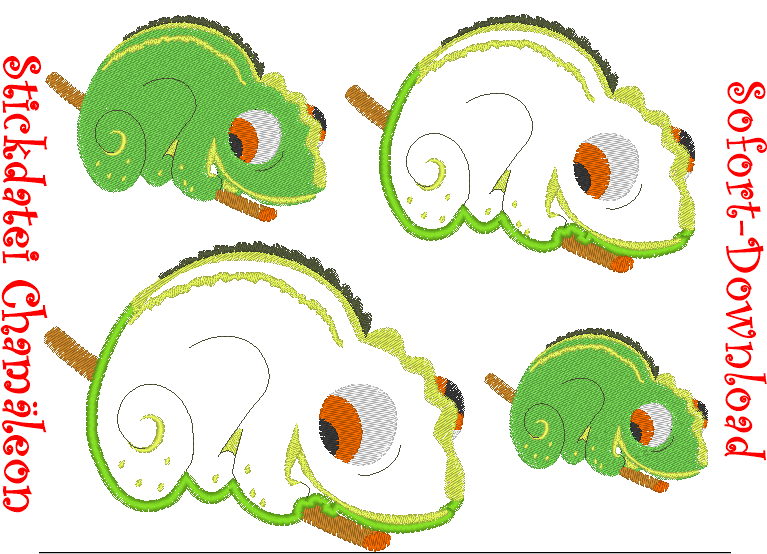 ♥ Stickdatei Chamäleon in verschiedenen Größen, für Stoff Applikationen und gefüllt ♥