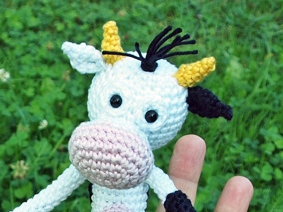 Die Milchkuh ist schwarz gefleckt und hat Euter. Sie wird ca. 26 cm groß.