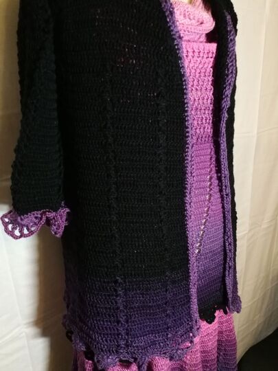 Sexy, verspieltes Set mit kecker Abschlusskante, bestehend aus Pullover, Rock und Jacke in den Größen 32-60.