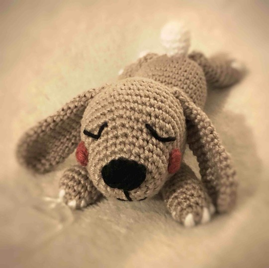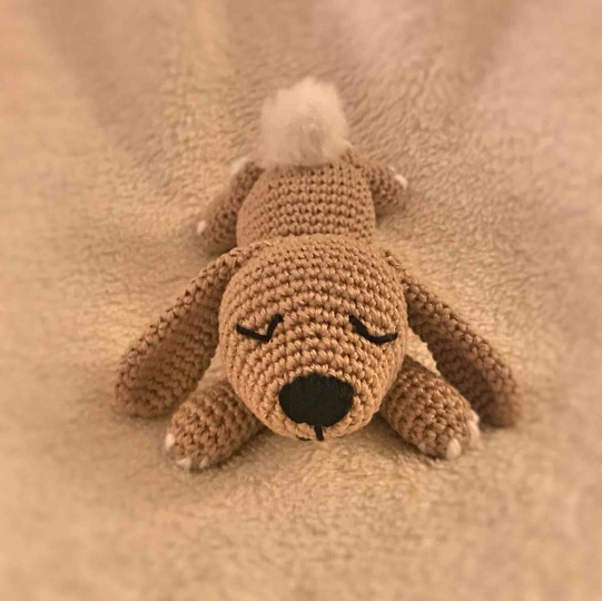 Mit der angegebenen Wolle wird die Figur etwa 16cm lang und 9cm hoch.