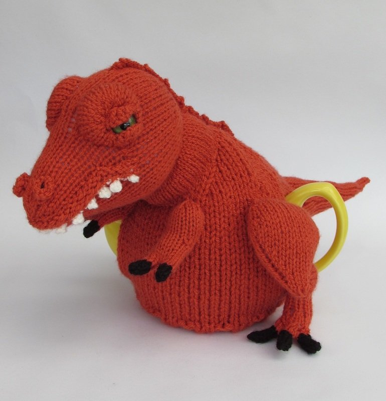 This product is the knitting pattern only to make your own Tyrannosaurus Rex tea cosy.