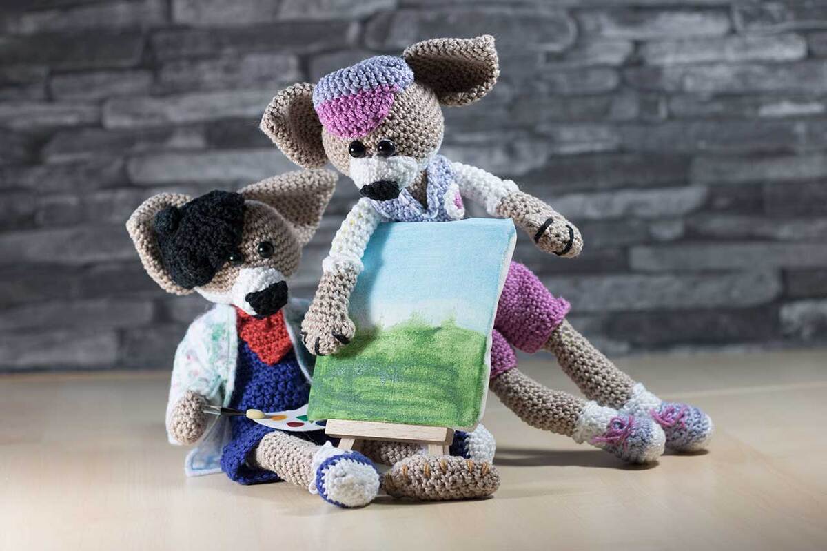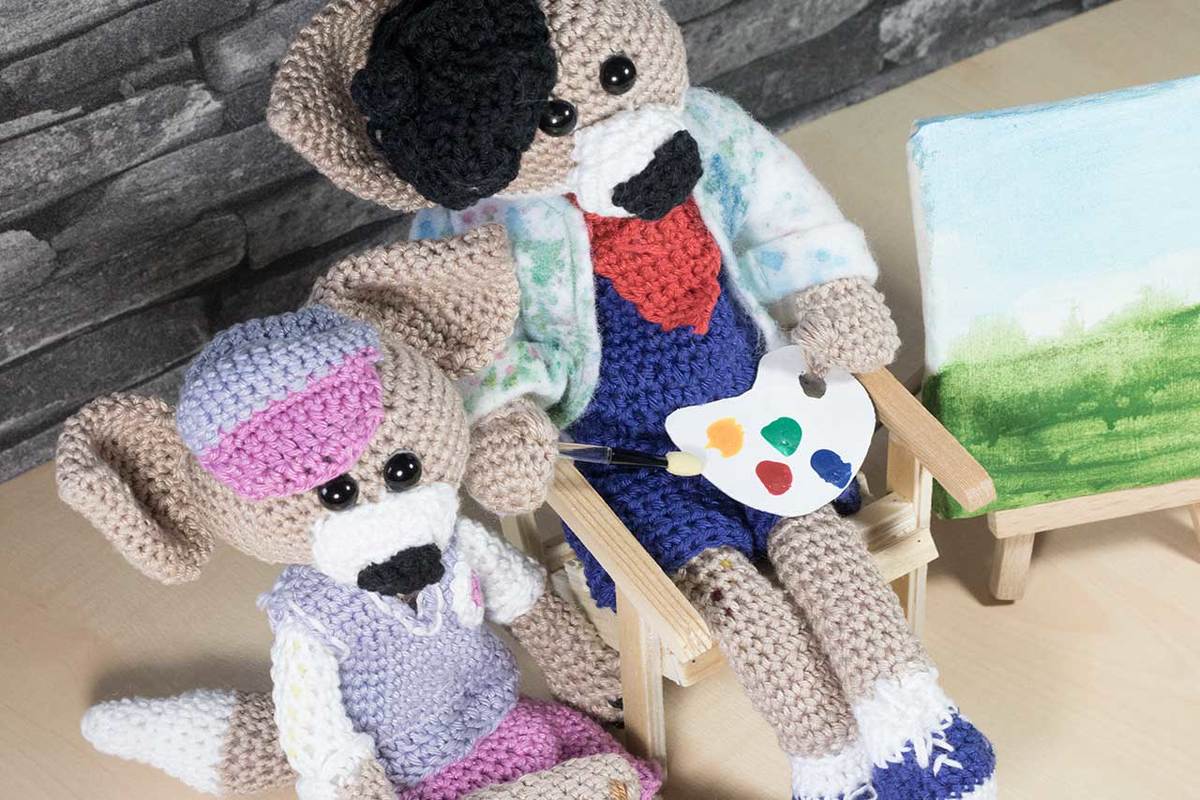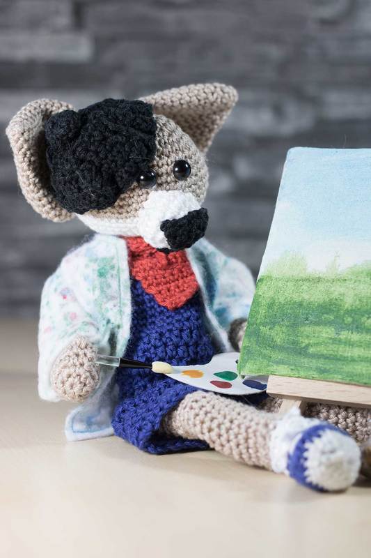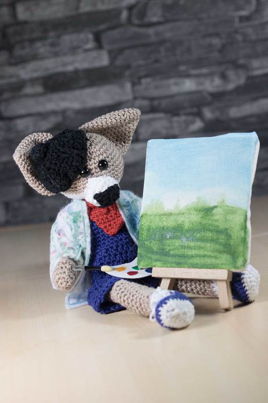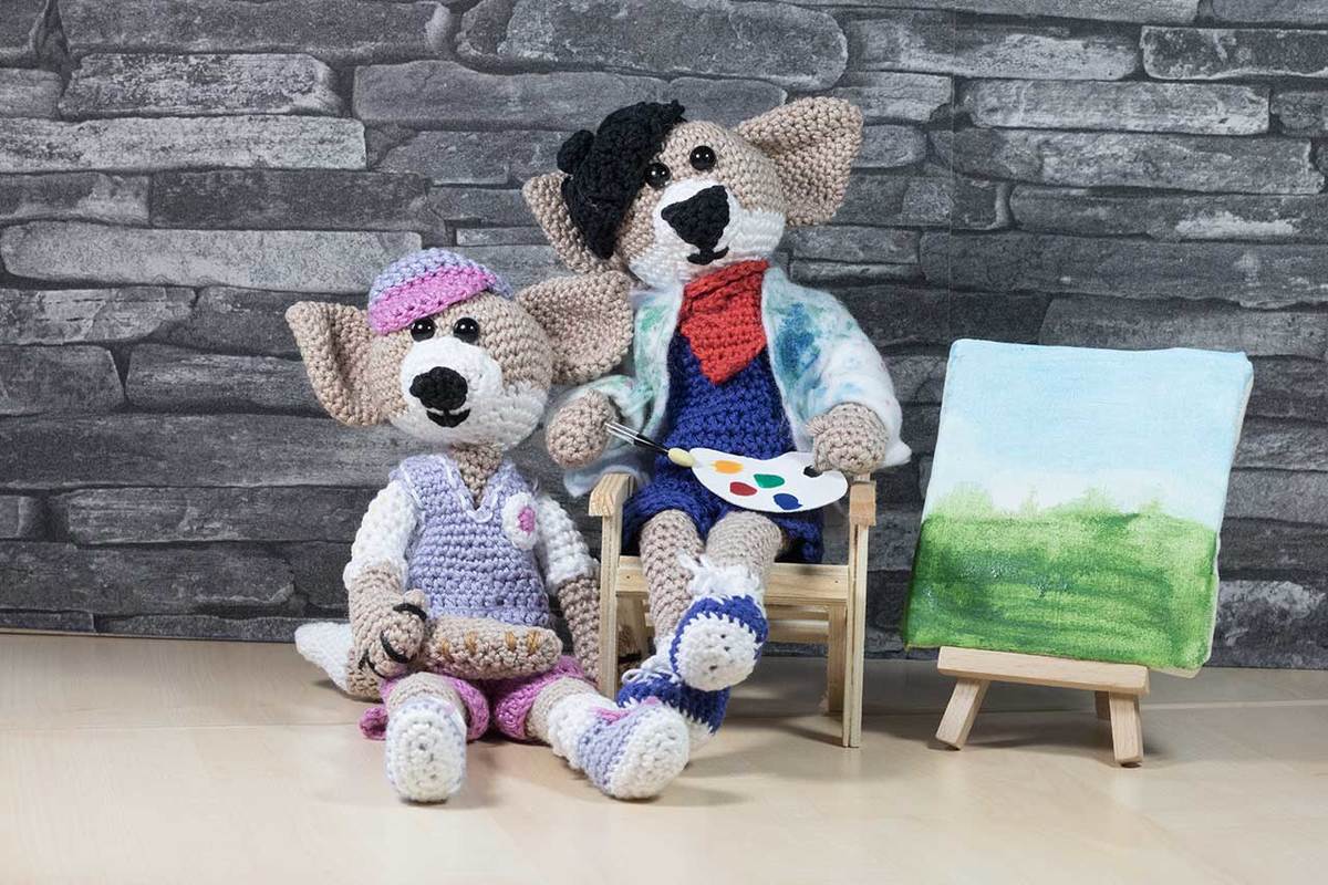 Der französische Maler Jean und sein Freund Pascale sind im Stehen fast 30 cm groß und im Sitzen 19 cm. Wenn du ihn nacharbeiten willst, dann sollten du feste Maschen, Stäbchen, Kettmaschen und die Zu- und Abnahme von Maschen häkeln können. In dieser Anleitung werden keine Maschen erklärt.