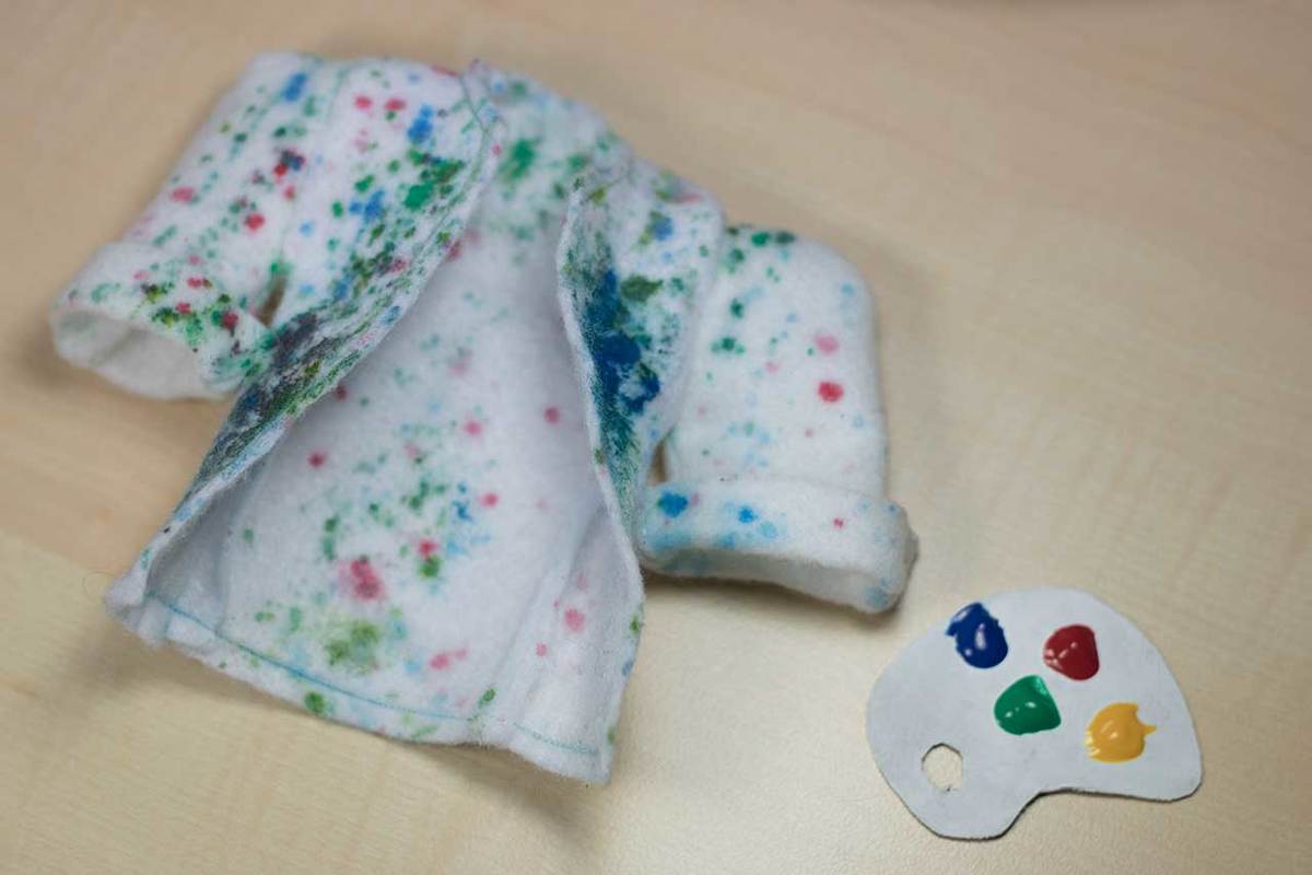 Auch wie der Malerkittel genäht und gefärbt wird ist in der Anleitung genau beschrieben.