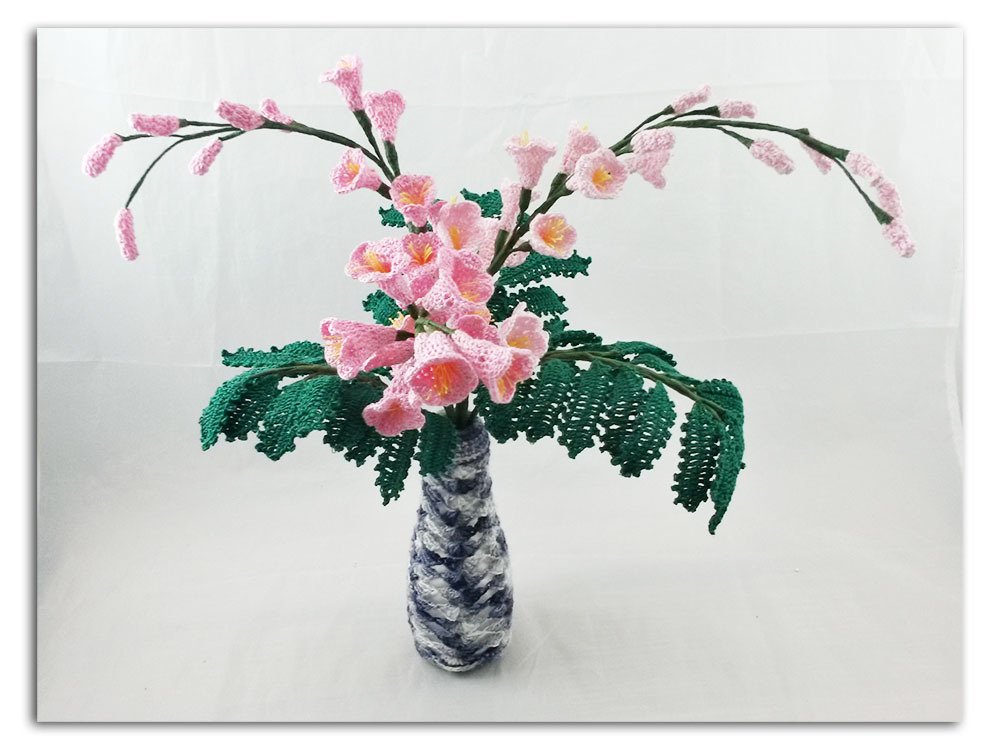 Die ausführliche Anleitung zeigt in Wort, Bild und Häkelschrift wie dieser Blütentraum gehäkelt wir und ist auch für Anfänger geeignet. Die Anleitung für eine Blumenschale ist ebenfalls enthalten.