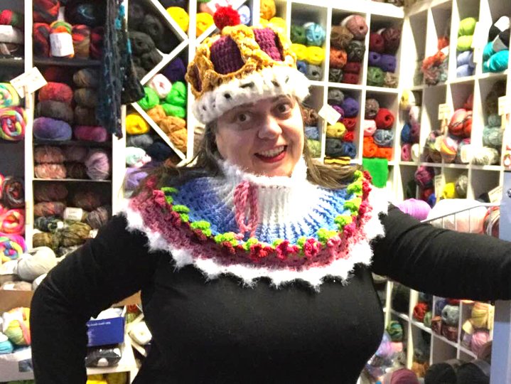 und eine haarige, leicht glitzrige Wolle von Katja sie heißt ONIX.....da kannst Du aber auch eine andere haarige Wolle nehmen!