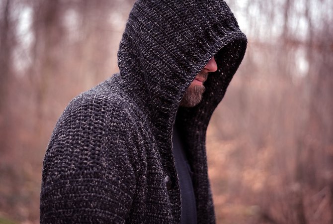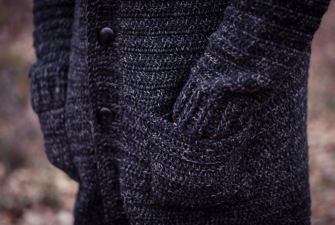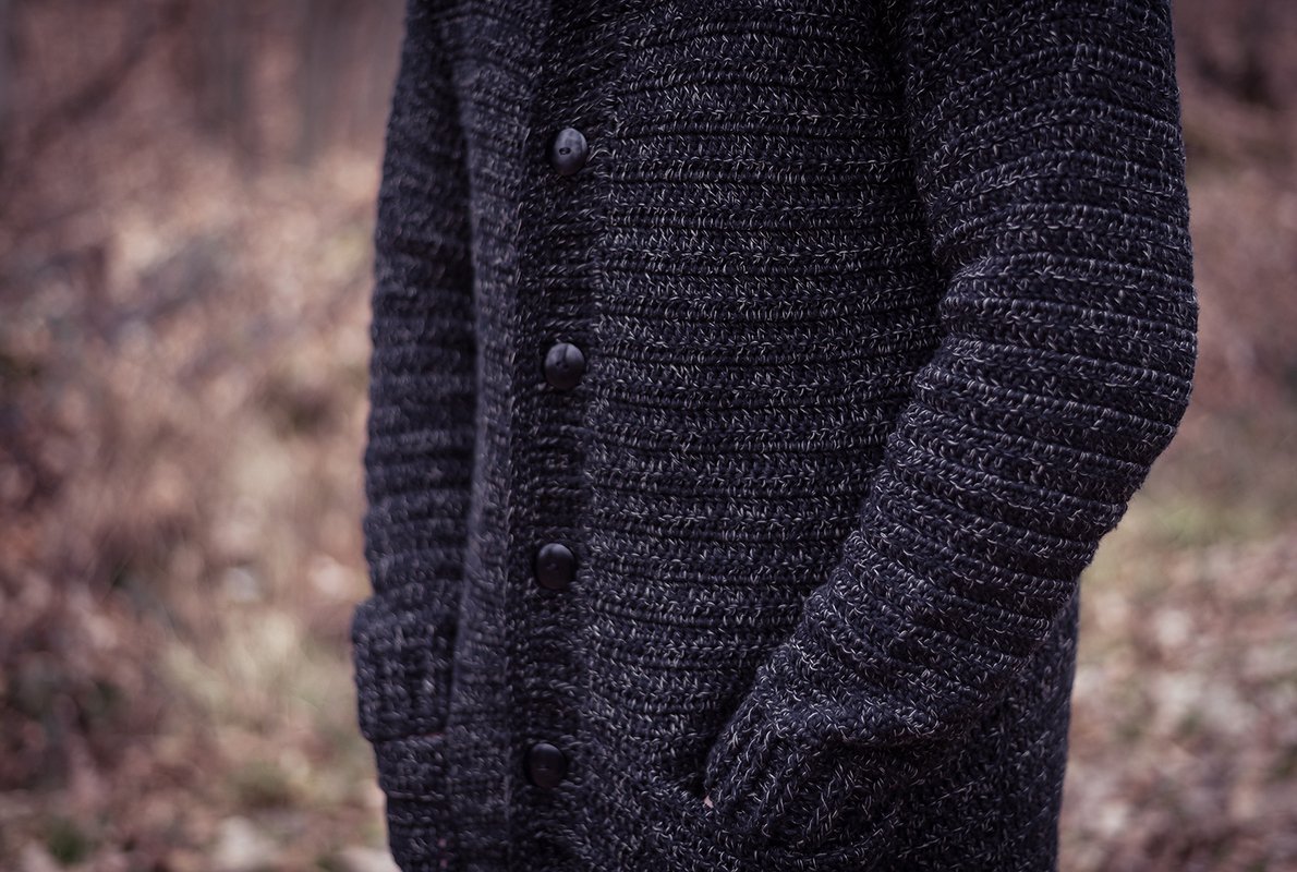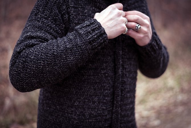 Wolle: 8-fädiges Garn (50%BW, 50% Poly) 1200g, etwa 2300m LL, NS 5 für Größe XL