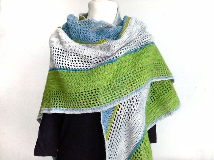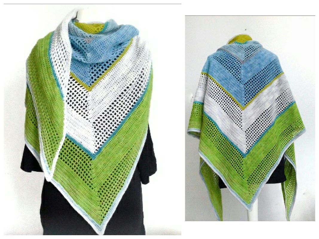 Häkelanleitung Tuch mit Lochmuster-Versatzstreifen