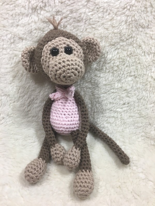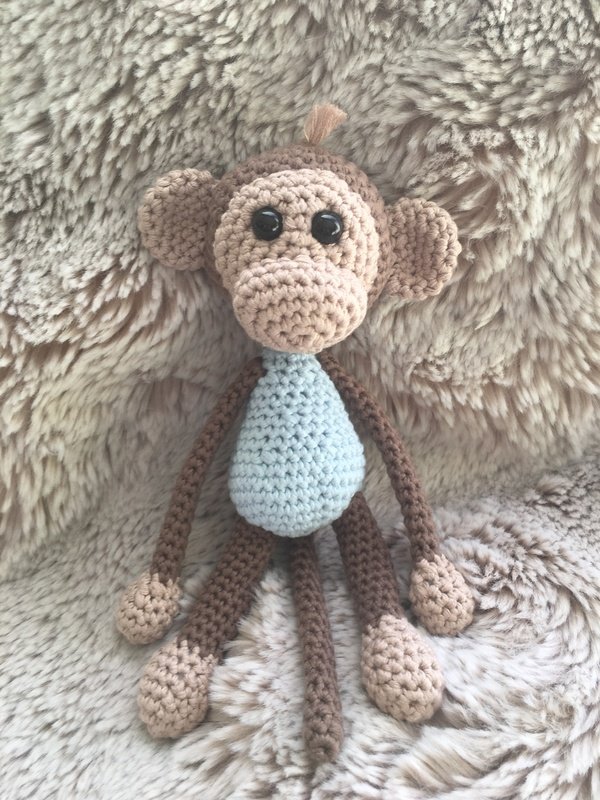 Mit dieser ausführlichen und bebilderten Anleitung könnt ihr euch euren eigenen Affen häkeln. Es sollten Grundkenntnisse im Häkeln (Fadenring, feste Maschen, Luftmaschen) vorhanden sein.