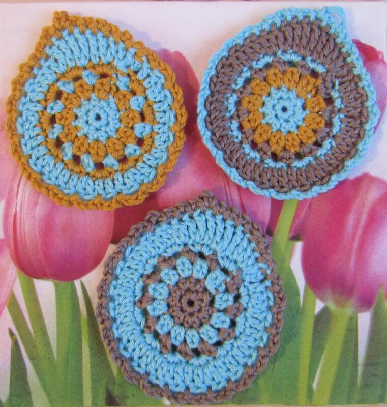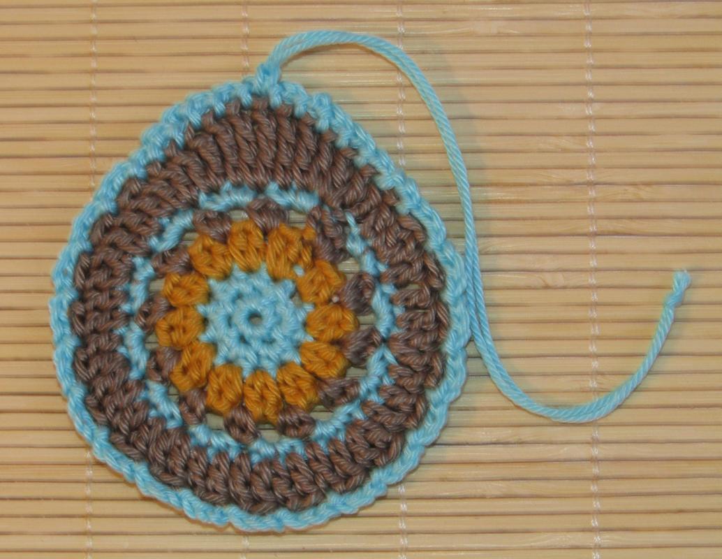Ich habe die Eier (8,5 cm hoch und 7,5 cm breit) aus dem schönen leuchtenden Garn Schachenmayr Catania gehäkelt. Dabei habe ich Kombinationen aus drei verschiedenen Farben, nämlich hellblau, ocker und dunkelbraun gewählt. Natürlich lassen sich die Ostereier auch in anderen beliebigen Farbzusammenstellungen häkeln.