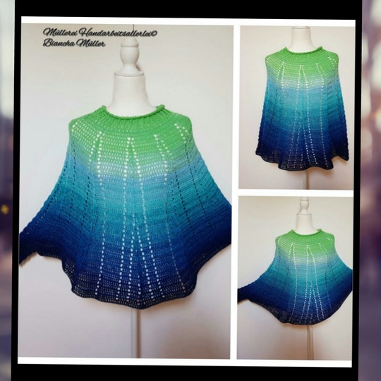 Der Ponchopulli wird in einem Stück von oben nach unten gehäkelt. Er kann als Pullover oder auch als Poncho getragen werden. Die Länge und die Grösse können gut angepasst werden. Ist in der Anleitung alles beschrieben. Der Ponchopulli ist auch für Anfänger geeignet.