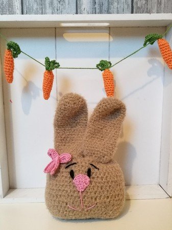 Mit der empfohlenen Wolle und Nadelstärke werden die Hasenbeutel ca. 20 cm breit und ca. 20 cm hoch