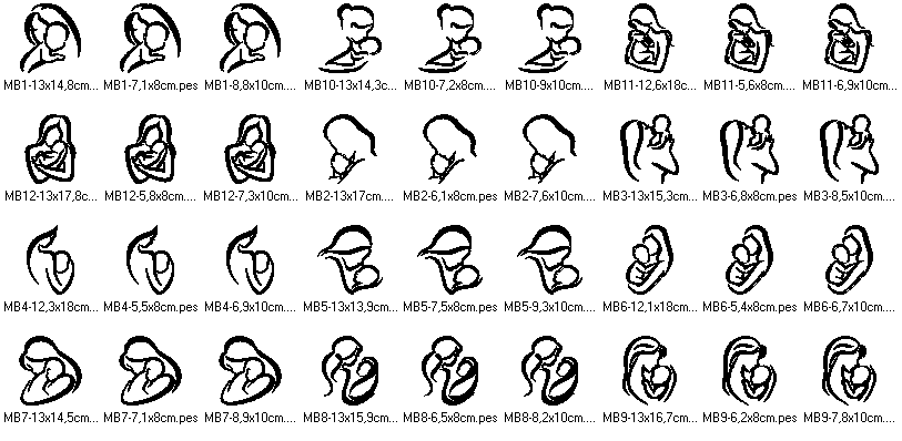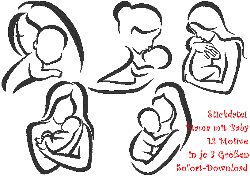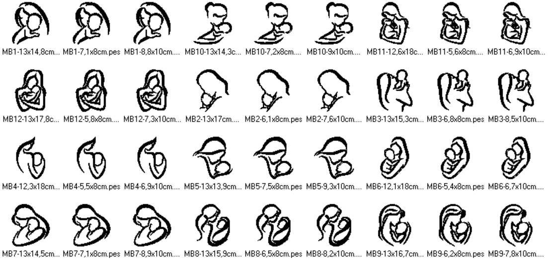 Stickdateiserie mit 12 verschiedenen Motiven in je 3 Größen