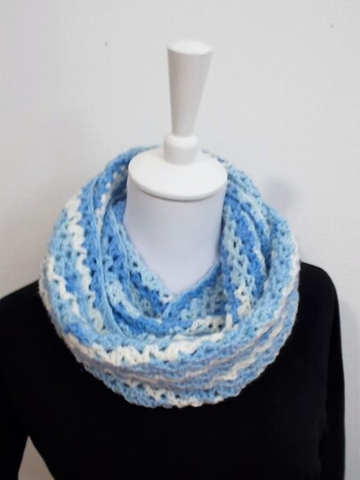 Häkelanleitung für einen Loop in Runden oder wahlweise in Reihen gehäkelt