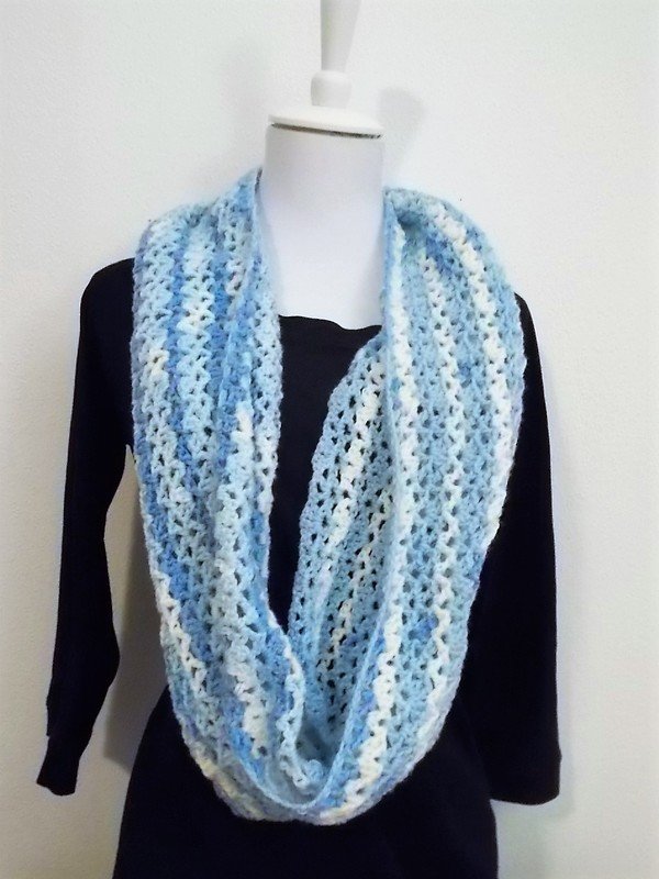 mit blau-weißem Farbverlaufsgarn mit attraktivem Lochmuster