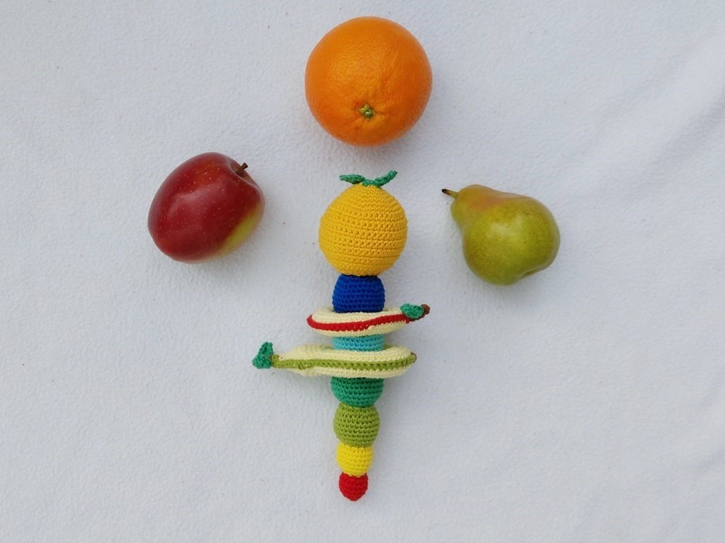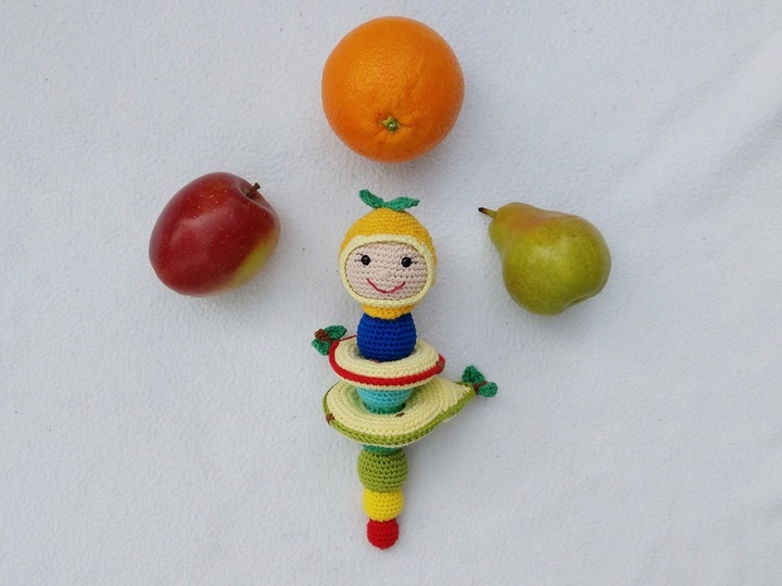 Was gibt es schöneres, als zur Geburt/Taufe oder einfach auch so etwas Selbstgehäkeltes zu verschenken. Die Idee dieser süßen Babyrassel ist mir während der Entstehung von dem Regenbogenwurm gekommen.