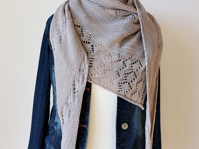 Cloudy Day ist ein asymmetrisches Dreieckstuch mit einem eleganten Lacemuster, das sich entspannt und gleichmäßig stricken lässt.