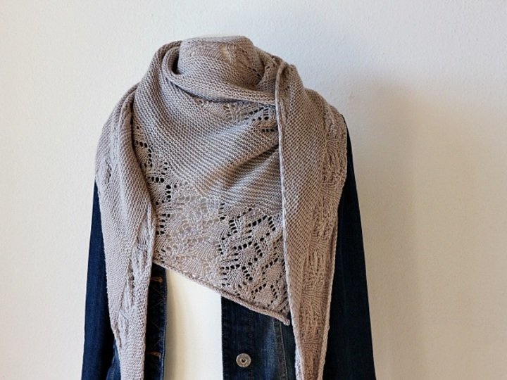 Das Tuch Cloudy Day wird seitwärts gestrickt, mit wenigen Maschen begonnen und durch regelmäßige Zunahmen stets vergrößert. Das verwendete Garn, das hier gezeigt wird, ist Malabrigo Sock, kann aber mit jedem anderen Garn in Sockenwollstärke gestrickt werden. Das Lacemuster wird nur auf der Vorderseite gestrickt und in den Rückreihen werden nur linke Maschen gearbeitet. Der kraus rechts gestrickte Teil sorgt dann wiederum für Entspannung und kann auch beim gemütlichen Fernsehabend gestrickt werden.