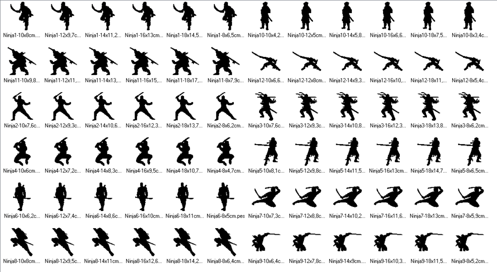 Stickdateiserie mit 12 verschiedenen Ninja Kämpfern in je 6 Größen