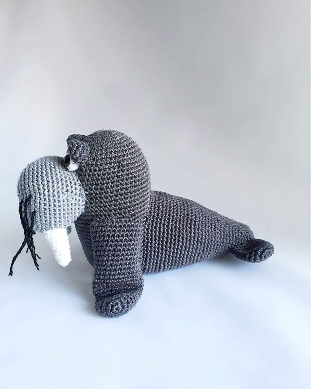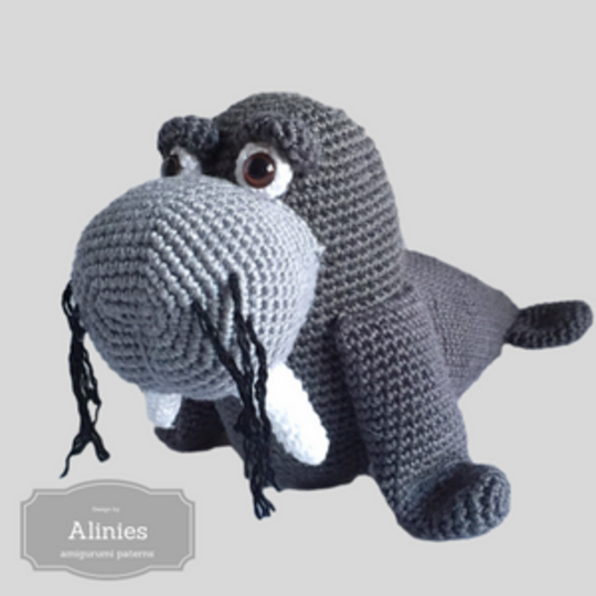 Häkelanleitung eines netten Walross als Pdf-Datei, klar beschrieben mit Fotos in Deutsch, Englisch und Hollandisch Das Walross ist, wenn es fertig ist, und mit Phildar Baumwolle 3 und auf Nadel Nr. 2,5 mm, ca. 22 cm grob.