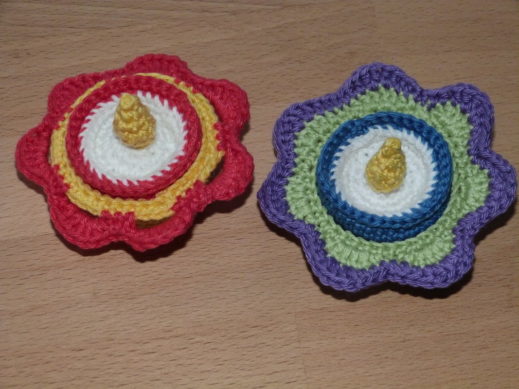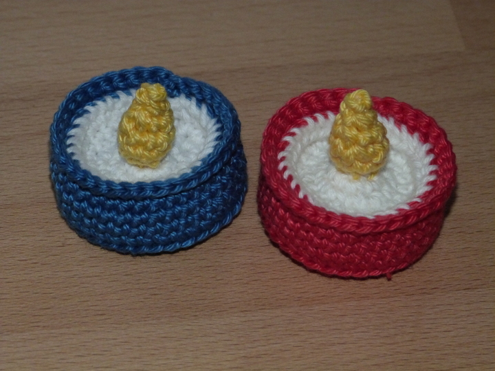 Bei Verwendung von Baumwollgarn mit einer Lauflänge von 125m/50g und Nadelstärke 2,5 bekommt das Teelicht etwa 40 mm Durchmesser und passt in dieTeelichthalter, die du auch nach meinen Anleitungen häkeln kannst.