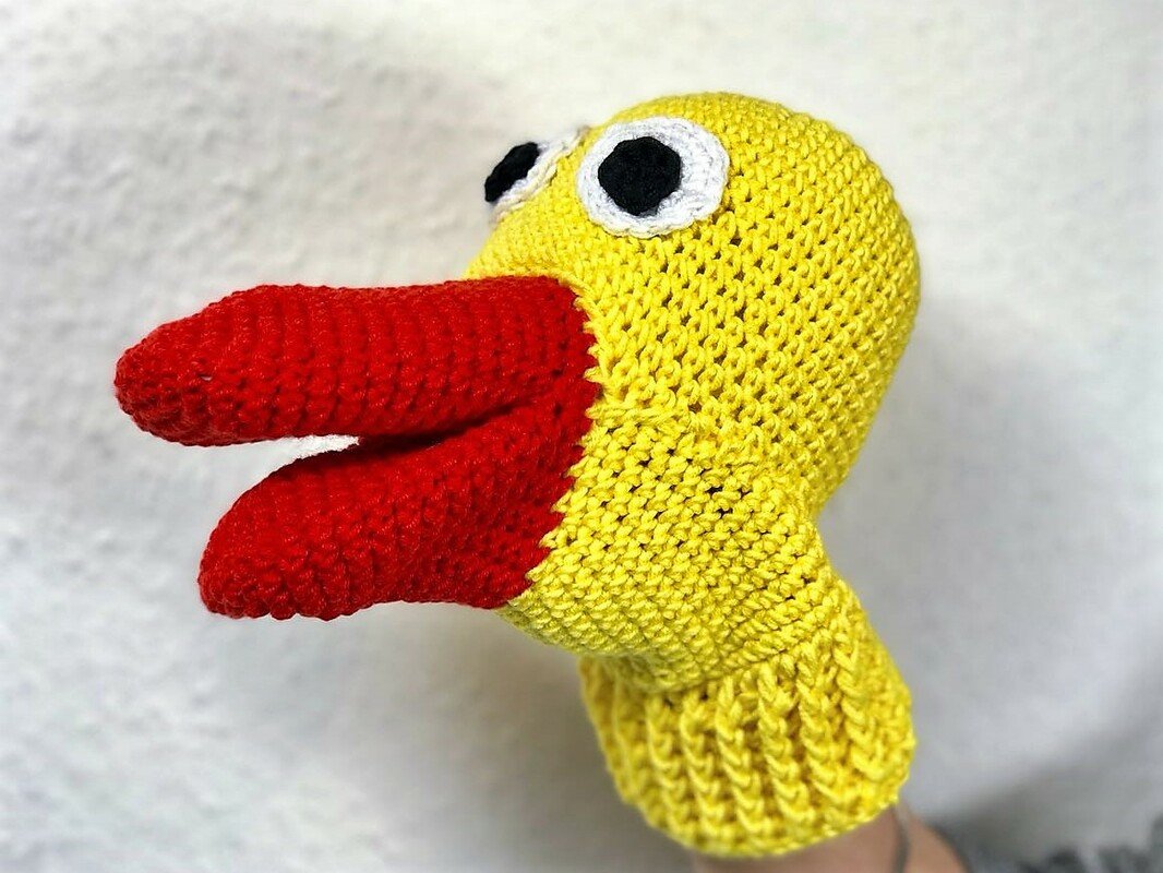 Häkelanleitung Handpuppe oder Topflappen Ente