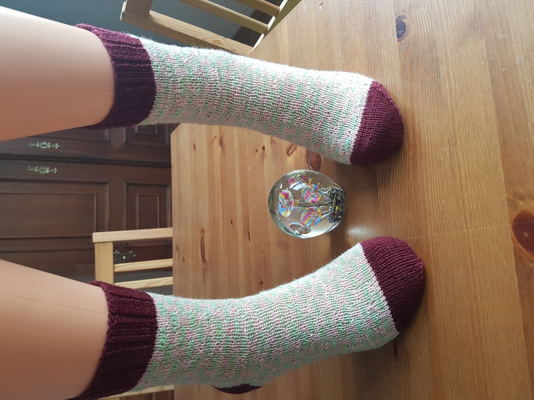 dreifarbig, gestrickt, mit Hebemaschenmuster