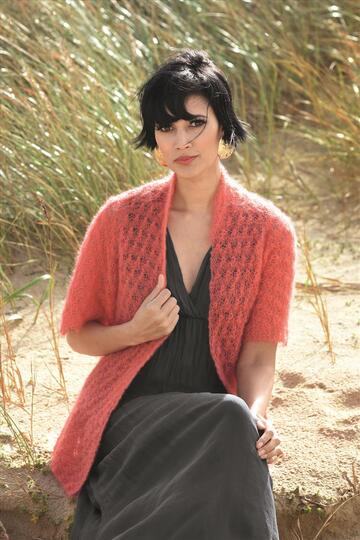 100 (125:150) g LangYarns Mohair Luxe (77% Mohair, 23% Seide, LL 175m/25g) Fb 29; Addi RundstrN Nr.5, ggf mit Lacespitze.