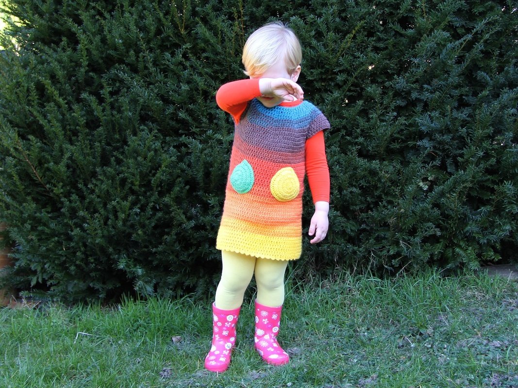 Dieses absolut anfängerfreundliche Kleid für ganz kleine, kleine, größere und ganz große Mädchen läßt sich schnell und einfach aus jedem Garn und in jeder Größe häkeln.