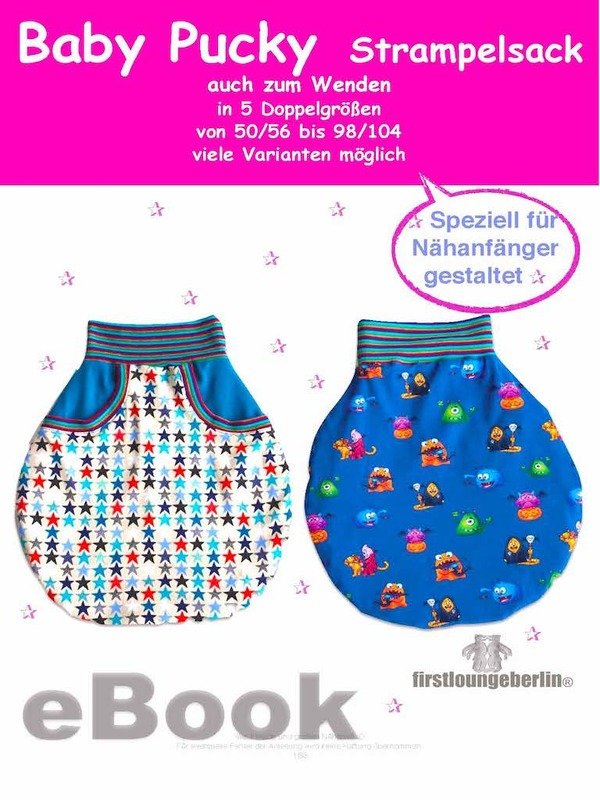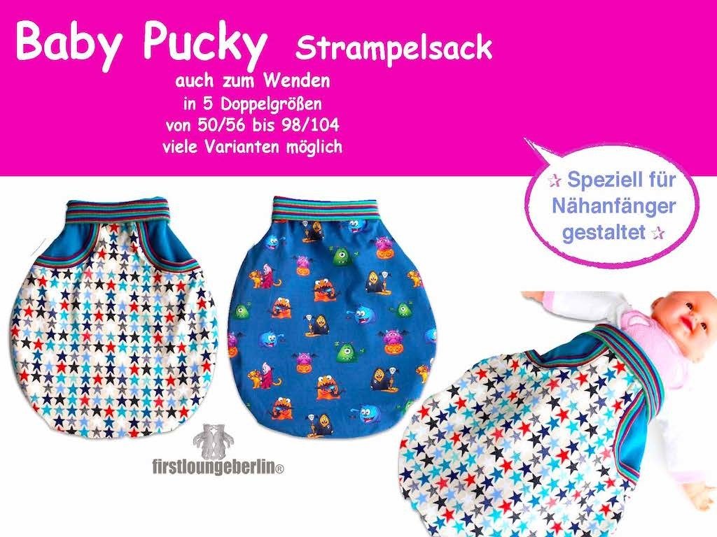 Baby Pucky Pucksack für Babys in 5 Größen 50/56 bis 98/104. Die Nähanleitung mit Schnittmuster ist so ausführlich gestaltet, dass Nähanfänger zu tollen Ergebnissen kommen!