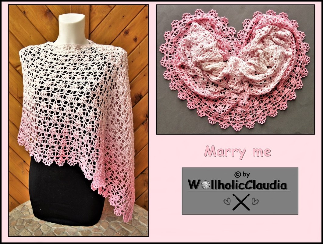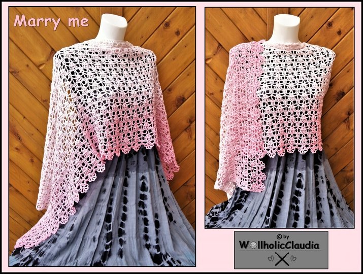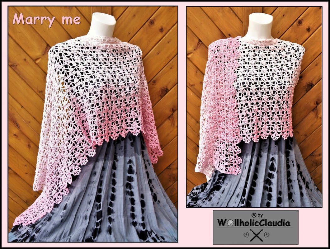 Diese gehäkelte Stola namens "Marry me" hat ein sehr feines- und edles Muster und ist perfekt für Hochzeiten oder andere festliche Gegebenheiten. Das Muster ist beidseitig tragbar, ob als Schal, Tuch, Stola oder Überwurf, hier sind viele Tragevarianten möglich.