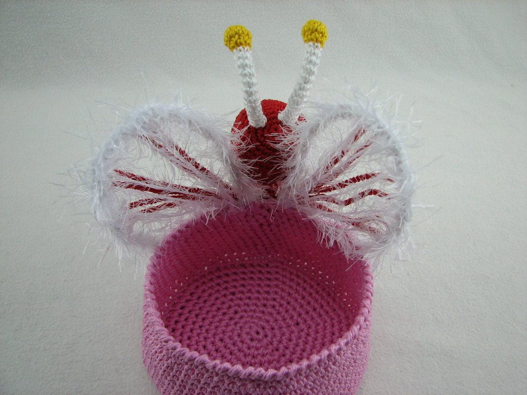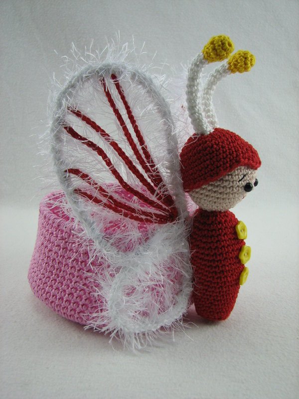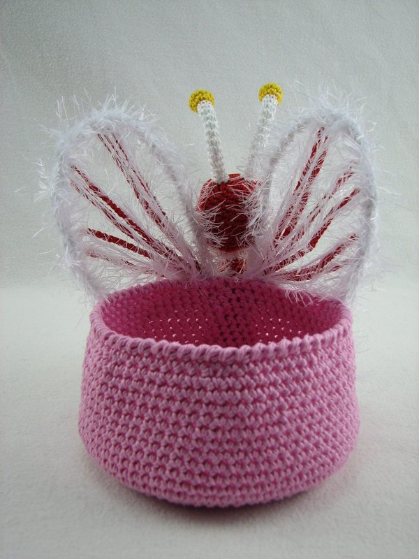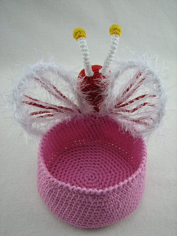 Zur besseren Stabilisierung des Bodens habe ich eine CD mit eingehäkelt, es geht aber auch ohne sie.