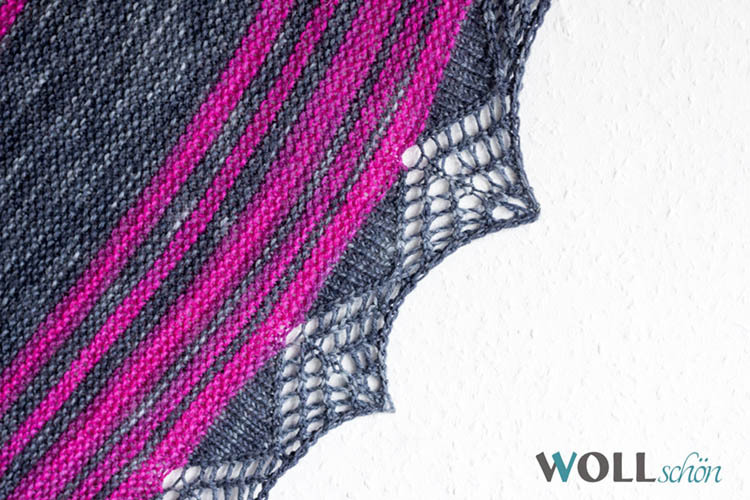Die Farbwechsel sind ausgeschrieben, für das Lacemuster gibt es eine Strickschrift/ Chart.