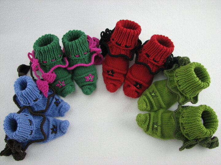 für ausgefallene Babyschuhe in 4 Größen, Sohlenlänge ca. 8, 9, 10 und 11 cm.