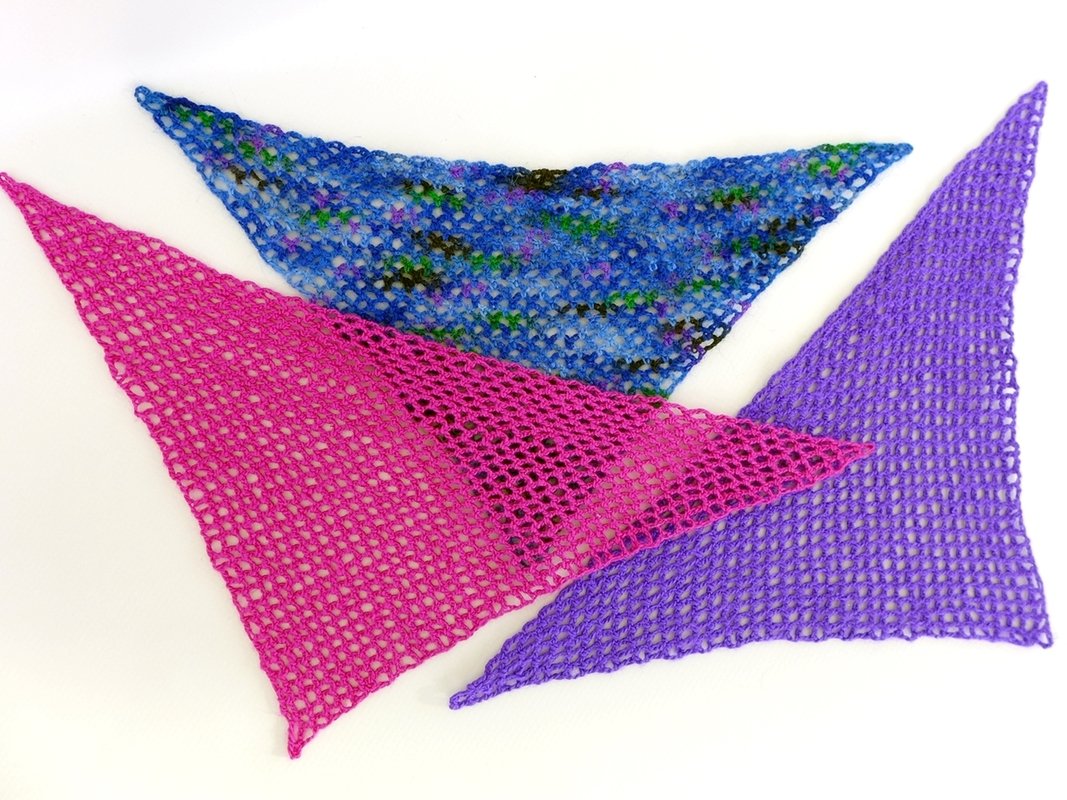 Vielleicht habt Ihr von einem großen Lacetuch noch 5 g dünnes Seidengarn übrig. Mit einer Häkelnadel der Stärke 1,5 macht Ihr aus diesem Rest ein schickes Tuch für die kleinen Anziehpuppen.