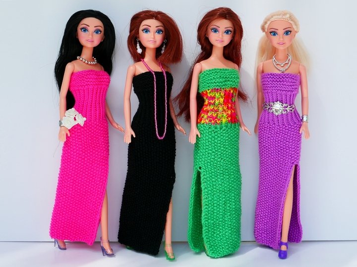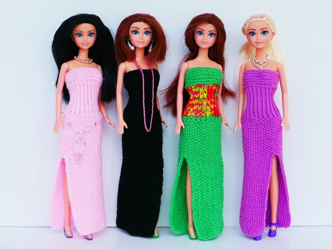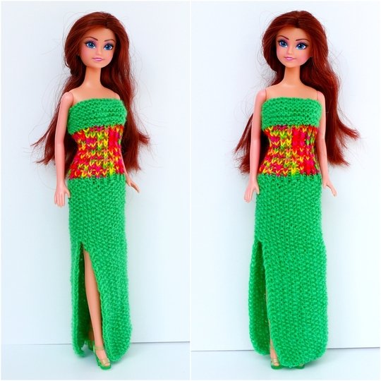 Das Kleid passt allen kleinen Anziehpuppen dieser Art, die ca. 29 bis 30 cm groß sind. Man kann es beim Stricken auf die individuelle Figur der Puppe anpassen.