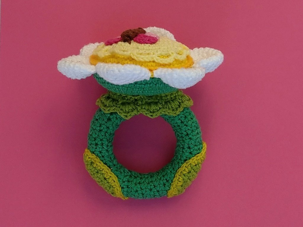 (100 % Baumwolle)und Häkelnadel 2. Die Rassel wird ca. 10 cm hoch.