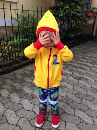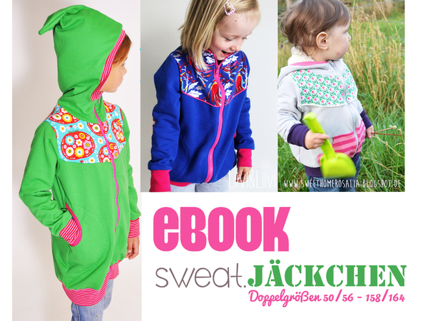 ~~Das „SWEAT.jäckchen“ kommt in kurzer (bis zur Hüfte) oder langer (bis über den Po) Version daher. Weiterhin hast du die Wahl zwischen einer Zipfelkapuze, einer runden Kapuze oder einem einfachen Kragen, außerdem zwischen Eingrifftaschen oder Kängurutaschen und eine Wendejacke kannst du auch noch draus zaubern.